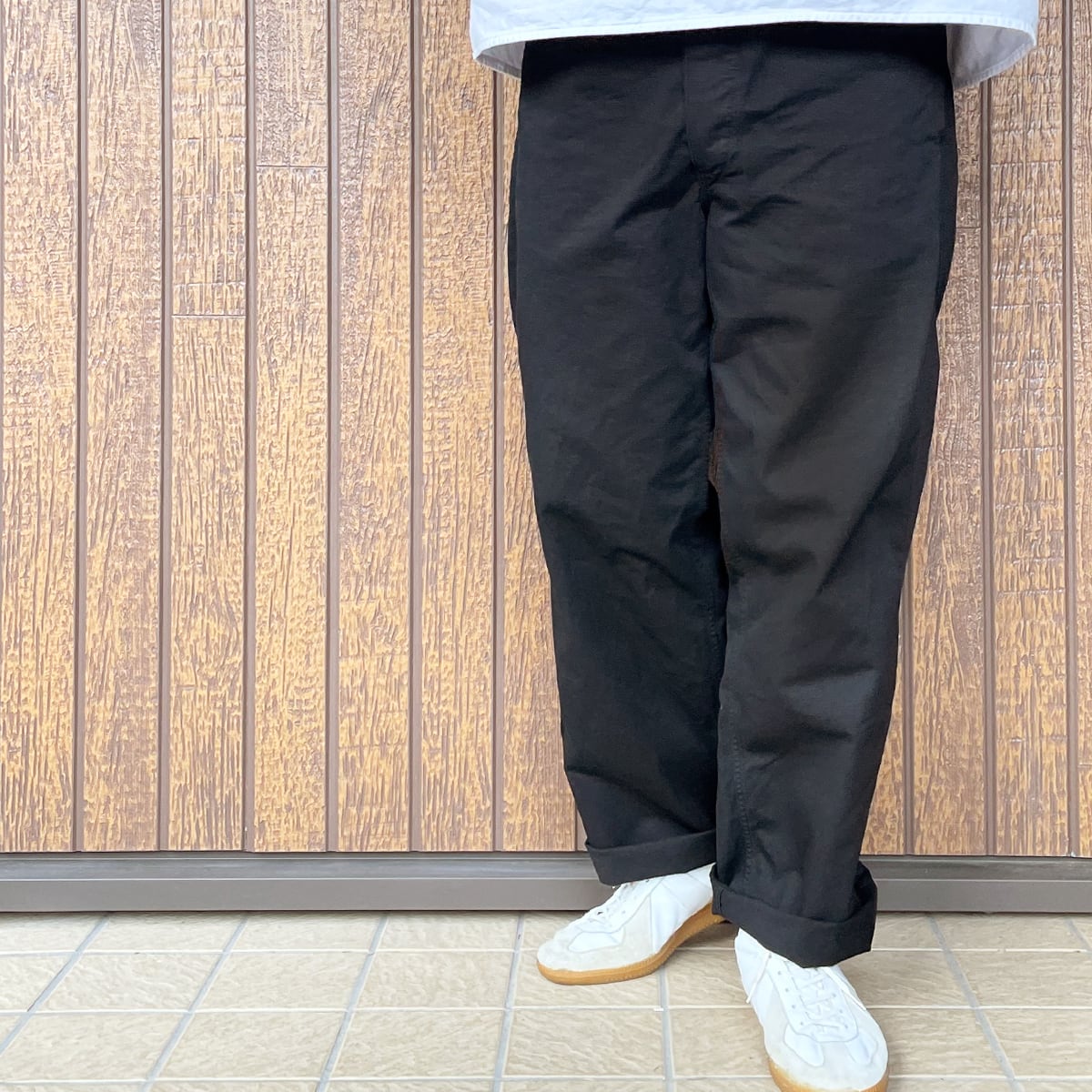 ウエストで合わせて程よいワイドシルエットで穿くのもいいですが、オーバーサイズでウエストを絞りドカンと穿くのも◎